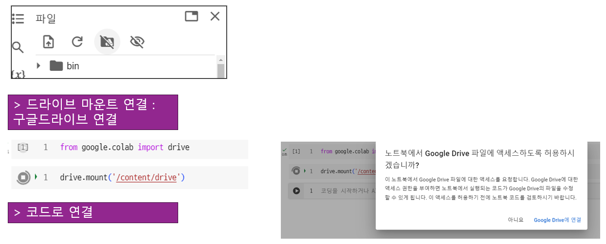 - 저장 : .ipynd로 구글드라이브에 안전하게 보관