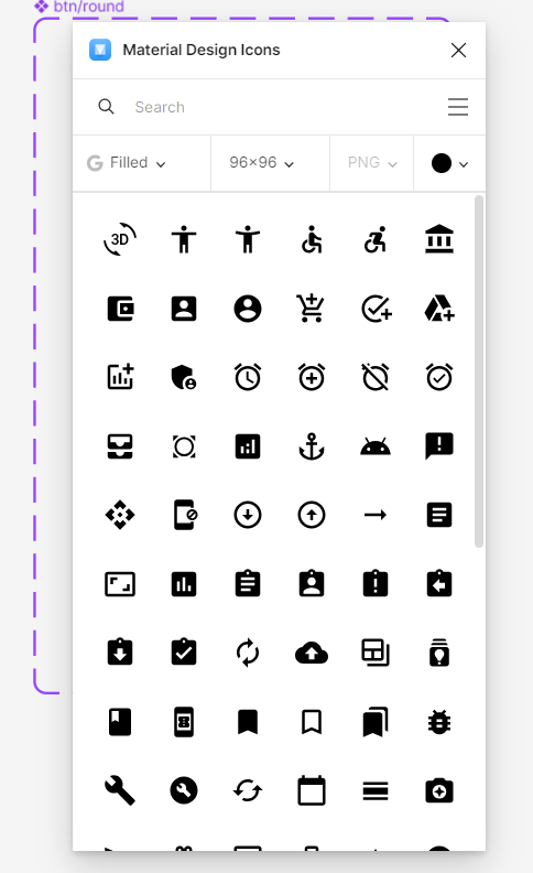 4. 아이콘을 버튼에 추가한다. 오토레이아웃이라 자동 정렬이 된다.