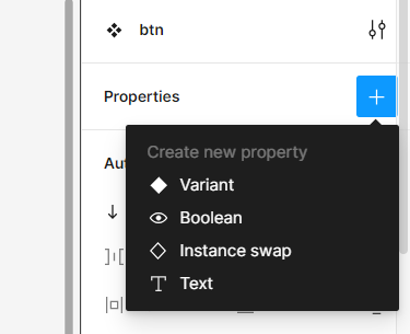 5. 전체 베리언츠를 선택한 후 사이드에서 properties 속성에서 베리언츠를 하나 더 추가 한다.