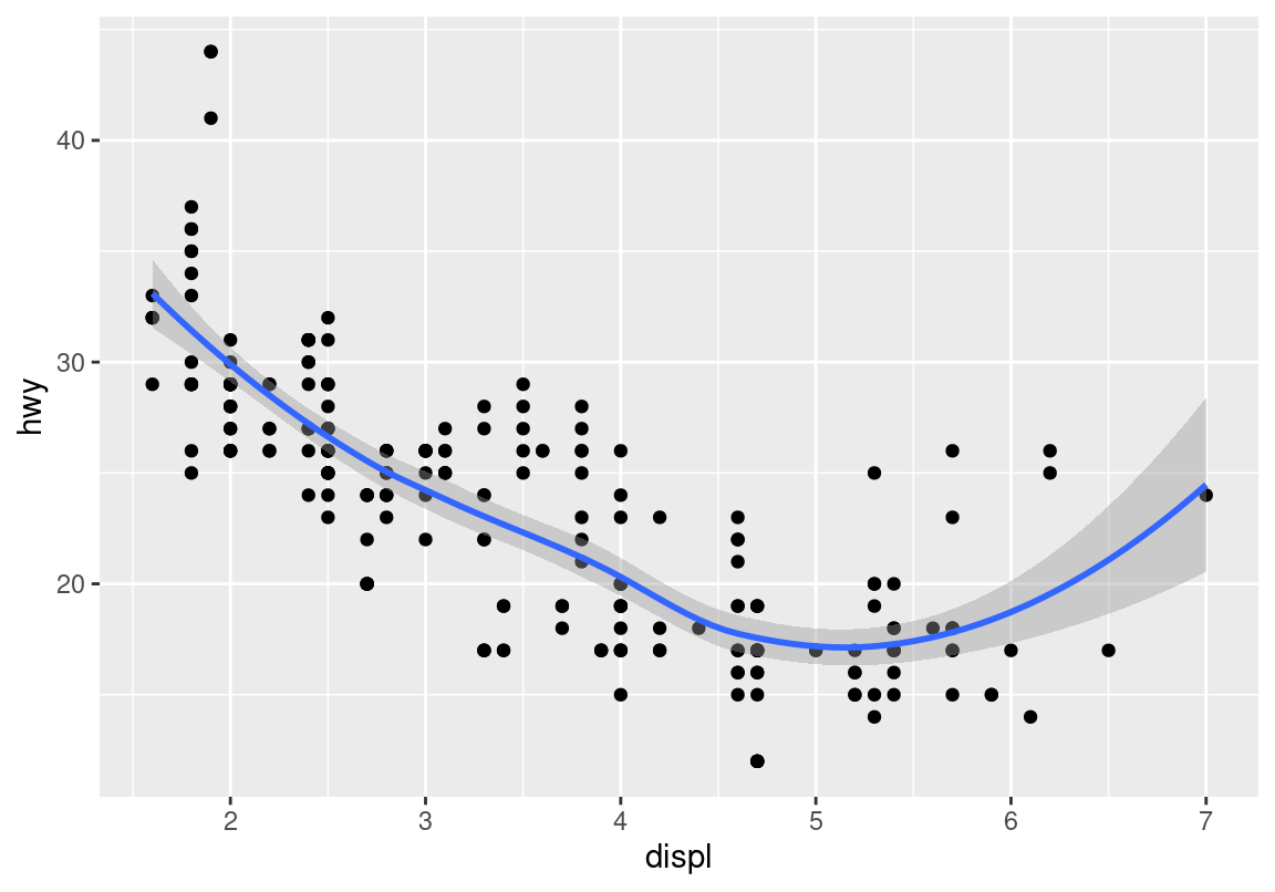 geom_smooth(mapping=aes(x=displ, y=hwy), data=mpg)