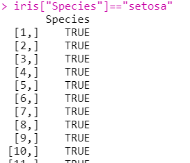 > data <- iris[iris["Species"]=="setosa",]