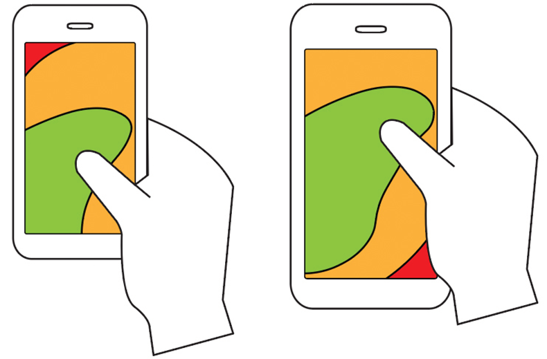 스마트폰의 크기 및 비율이나 손의 위치에 따라서도 터치 영역이 달라진다.