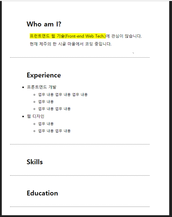 <p><mark>프런트엔드 웹 기술</mark>에 관심이 많습니다. <br>
